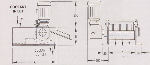 Mag Tools Paper band filter unit is fabricated in steel. This entire unit is fixed on a coolant tank with a pump to supply clean coolant back to the grinding machine. The filtering paper is spread over an endless stainless steel mesh conveyor which is connected to a geared motor. this uniquely designed conveyor prevents overflowing of the liquid and the full width of the filter paper is used in filtration of the coolant. The movement of the filter paper is controlled by a float switch which activates the geared motor to move forward.